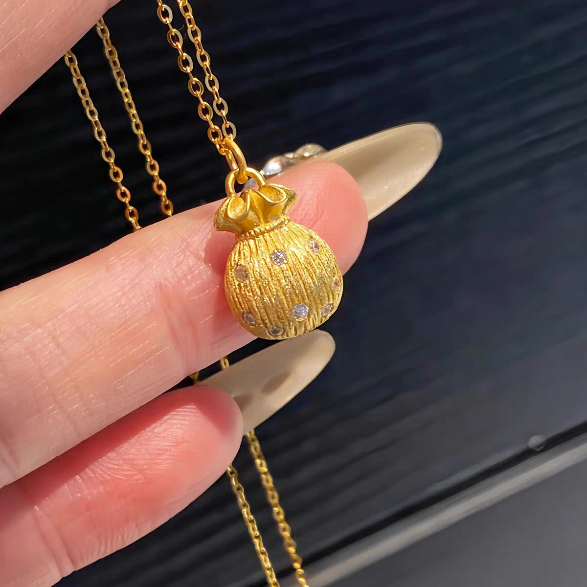 古法沙金はダイヤモンドのシルクの小さい福袋のペンダントのネックレスの女性の新しい中国式の軽くて豪華な花の糸のお金の袋の鎖の骨のチェーンを入れます。