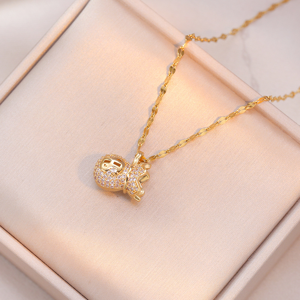【チタン鋼の真金メッキ】霊動の立体透かし彫りの銭袋のミニネックレスの小さい福袋の鎖の鎖のアクセサリー