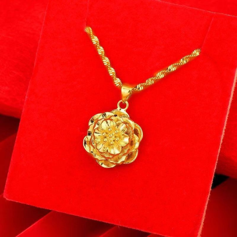 ベトナム沙金ネックレスバラネックレス愛花ペンダント金メッキ水波チェーン卸売りペンダント牡丹花黄