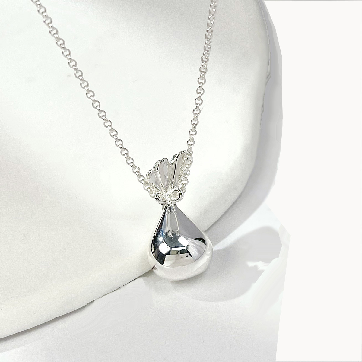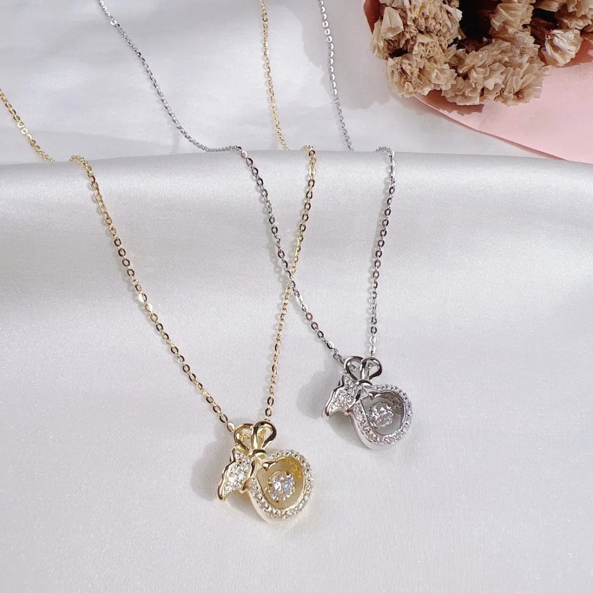 デザイナーオリジナル925純銀蝶結び財布ネックレス女性福袋ペンダントチェーン高級感鎖骨チェーン