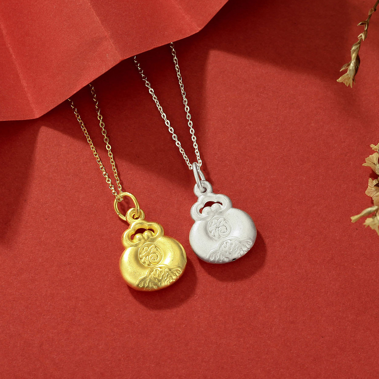 S999足銀霊動銭袋福袋ネックレス国風デザイン鎖骨鎖ネット赤軽贅沢優雅気質銀宝飾品