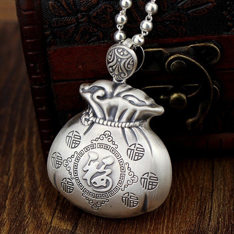 S999純銀足銀吉祥福袋ネックレス3d硬銀銭袋ペンダントレトロ国風潮鎖鎖卸売り