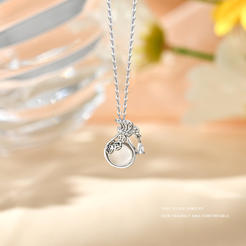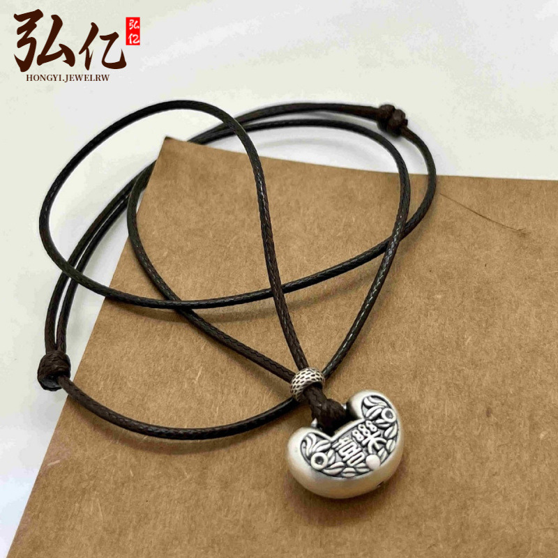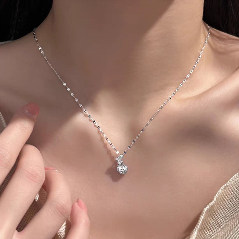 S999 スターリングシルバー新中国風の祝福バッグペンダントネックレス女性の祝福のお金バッグデザイン中国風プレーンシルバー鎖骨チェーン