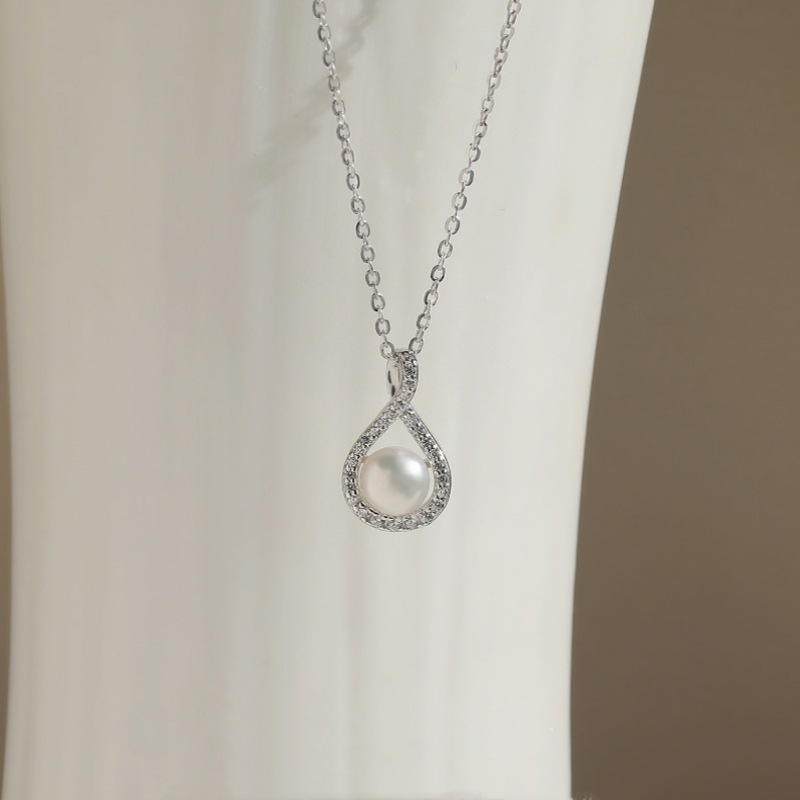 S925純銀天然淡水真珠水滴形気質優雅ペンダント軽豪華高級感ダイヤモンド財布ネックレス