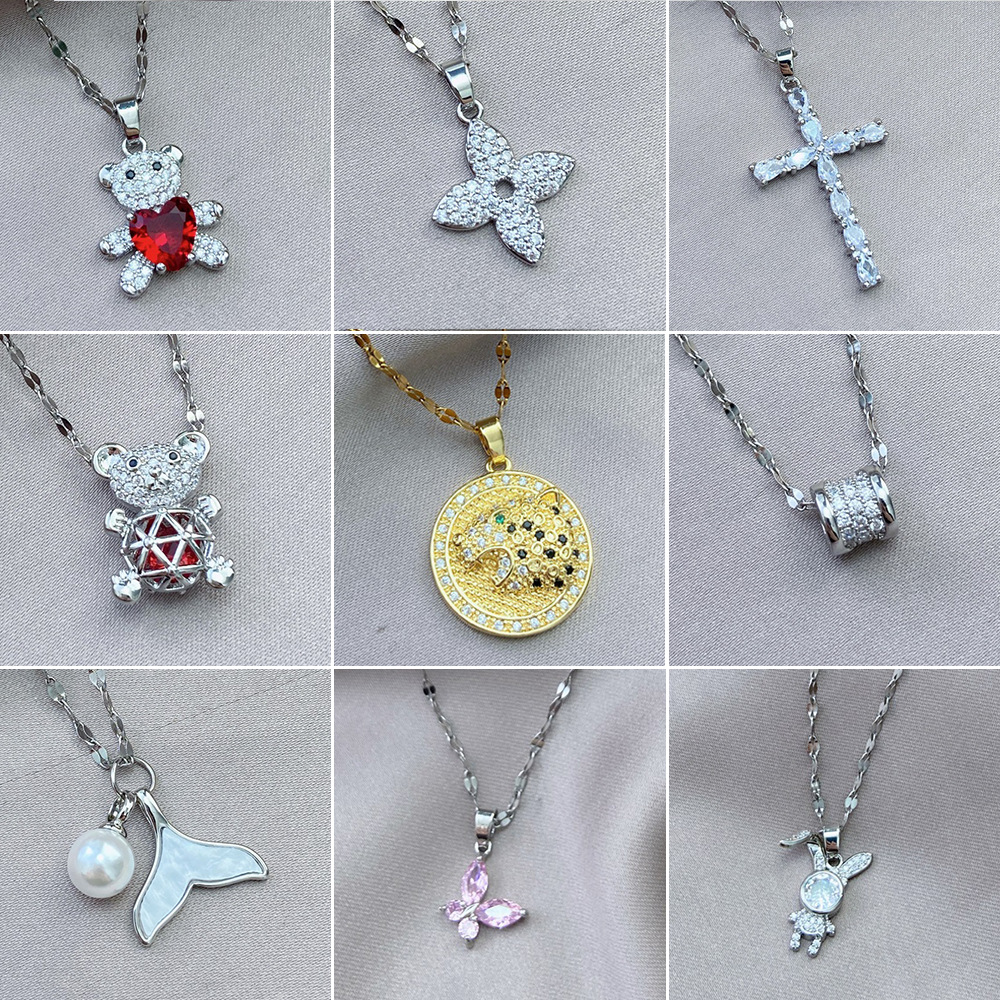 チタン鋼のチェーン動物の銅のペンダントは小さくジルコンのネックレスを入れています。