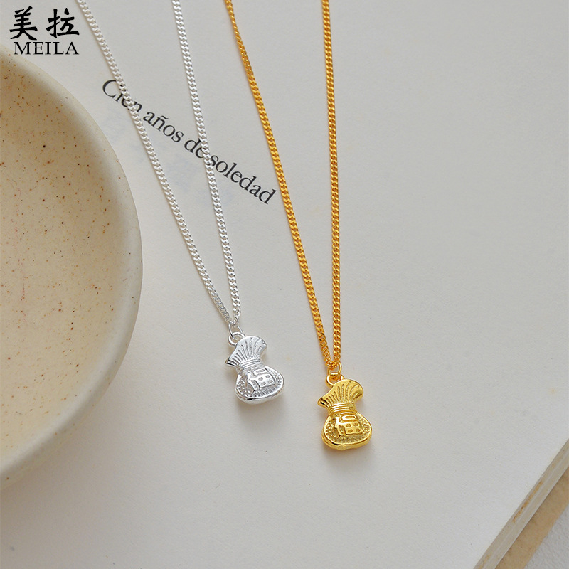 s925 スターリングシルバー小さなマネーバッグ福袋ネックレス女性のための中世スタイルニッチデザイン中国風ペンダント祝福鎖骨チェーン