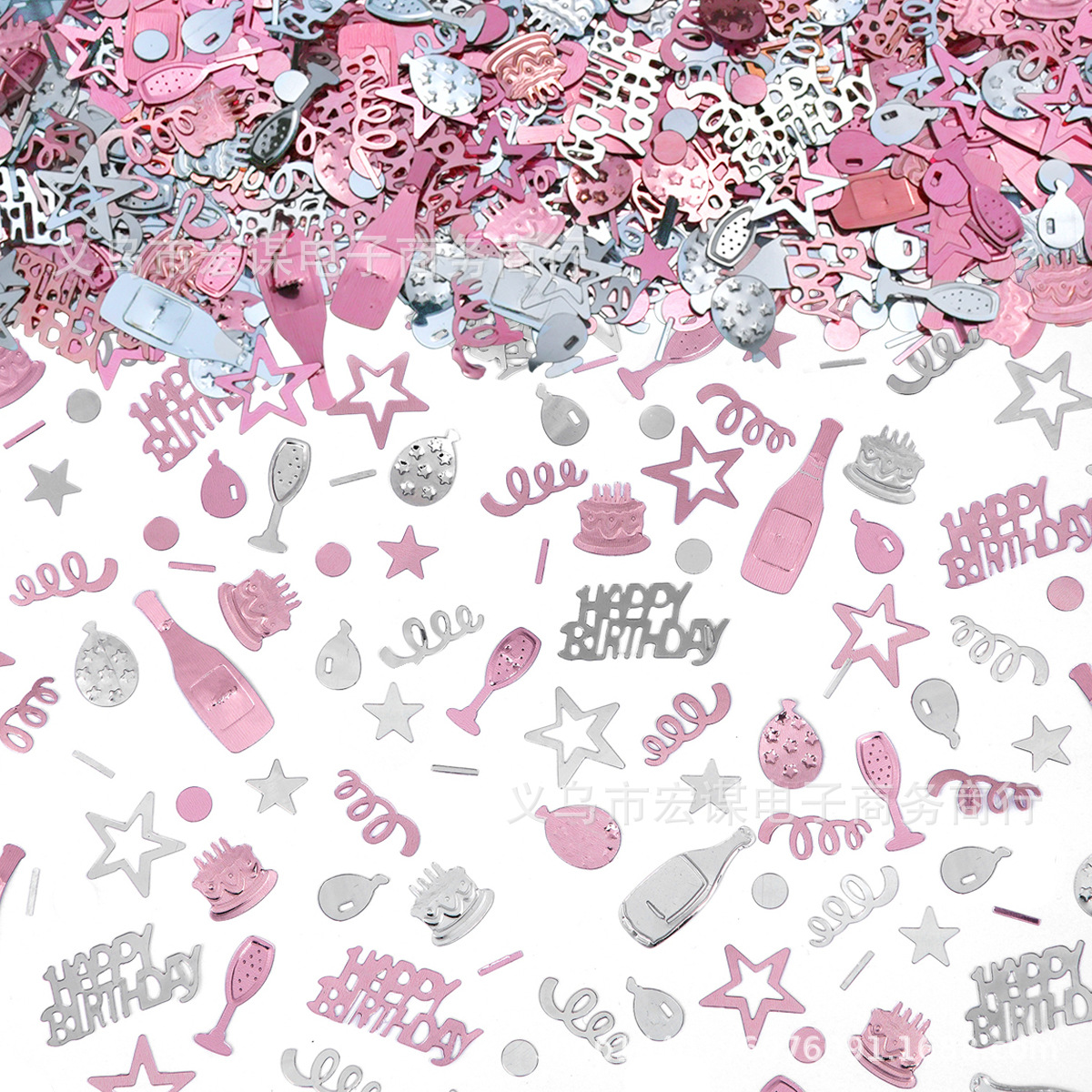 新しい誕生日の紙くずバラ金の誕生日の杯のケーキの風船のリボンのスパンコールの祝典の装飾品
