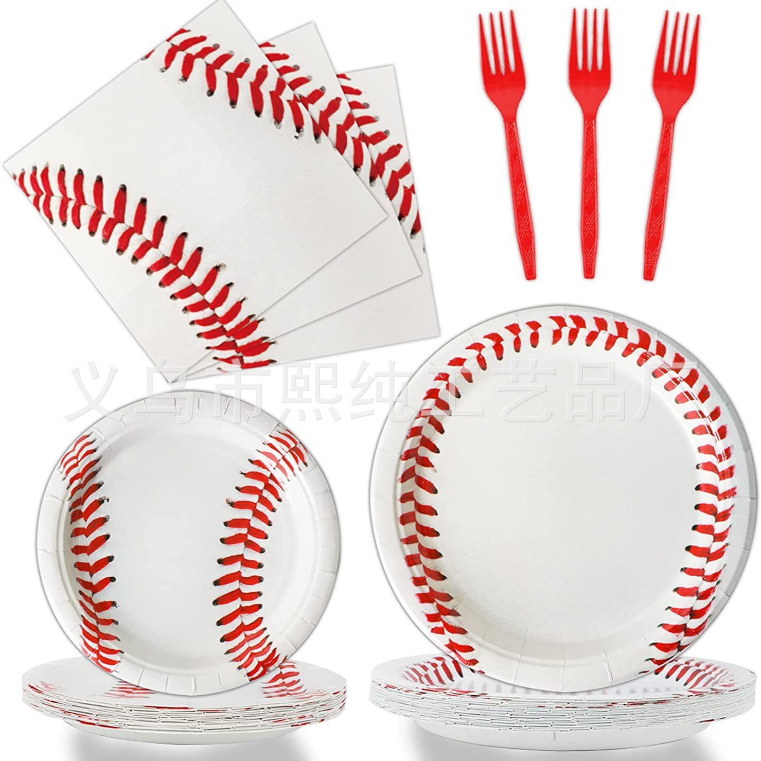 Amazon新品装飾ラウンド野球モチーフ誕生日パーティー使い捨てお食事皿ティッシュ紙コップセット