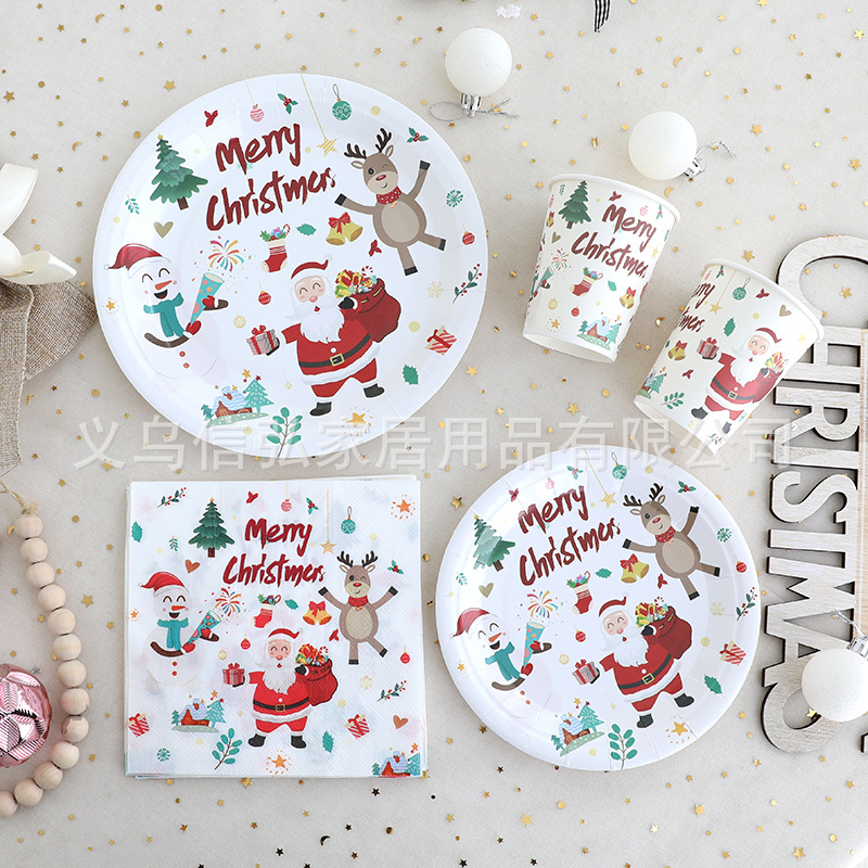 国境を越えた新しいクリスマス装飾用品食器新年パーティーレイアウト使い捨て紙皿紙コップティッシュセット