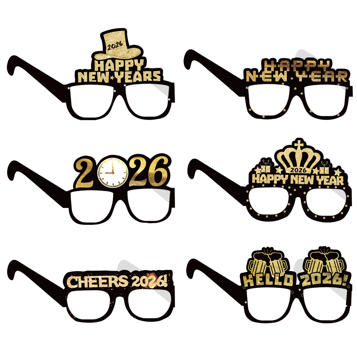 2026 新年パーティーデコレーション元旦学校パーティーレイアウト面白い写真メガネ紙メガネ卸売カスタマイズ