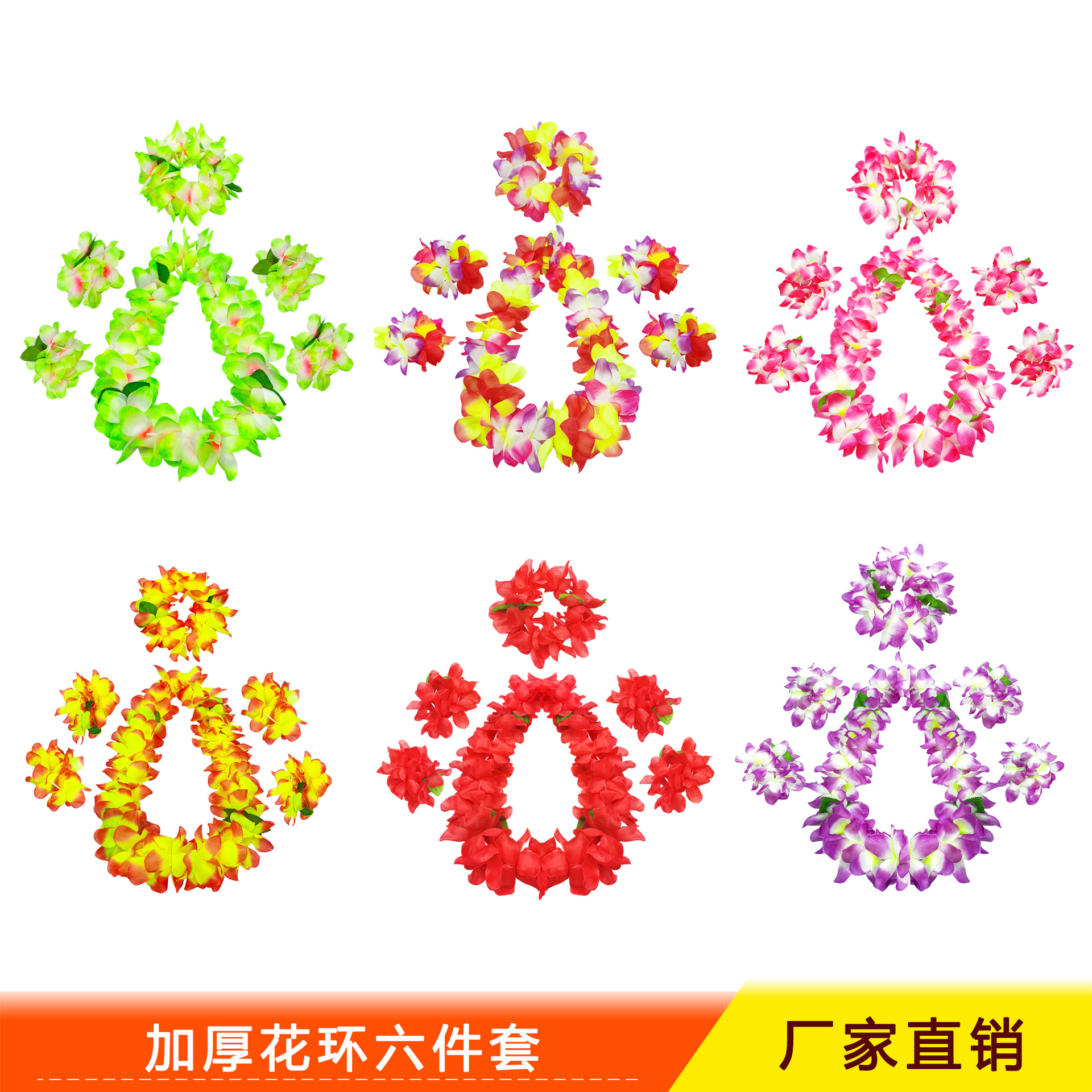 アップグレード版フラワーガーランド6点セット、厚手で密度の高いフラダンス用小道具、ハワイアンフラワーガーランドセット、大人と子供向け