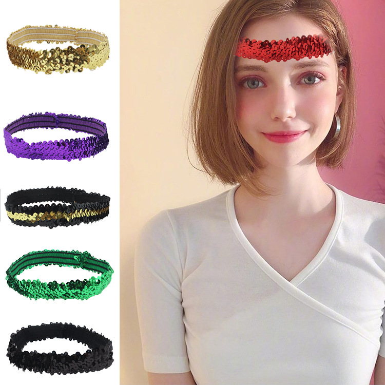 ファッショナブルな女性のスポーツヘッドバンド、光沢のあるスパンコールのヘアアクセサリー、ヘッドバンド、競技パフォーマンスダンス弾性ヘッドバンド
