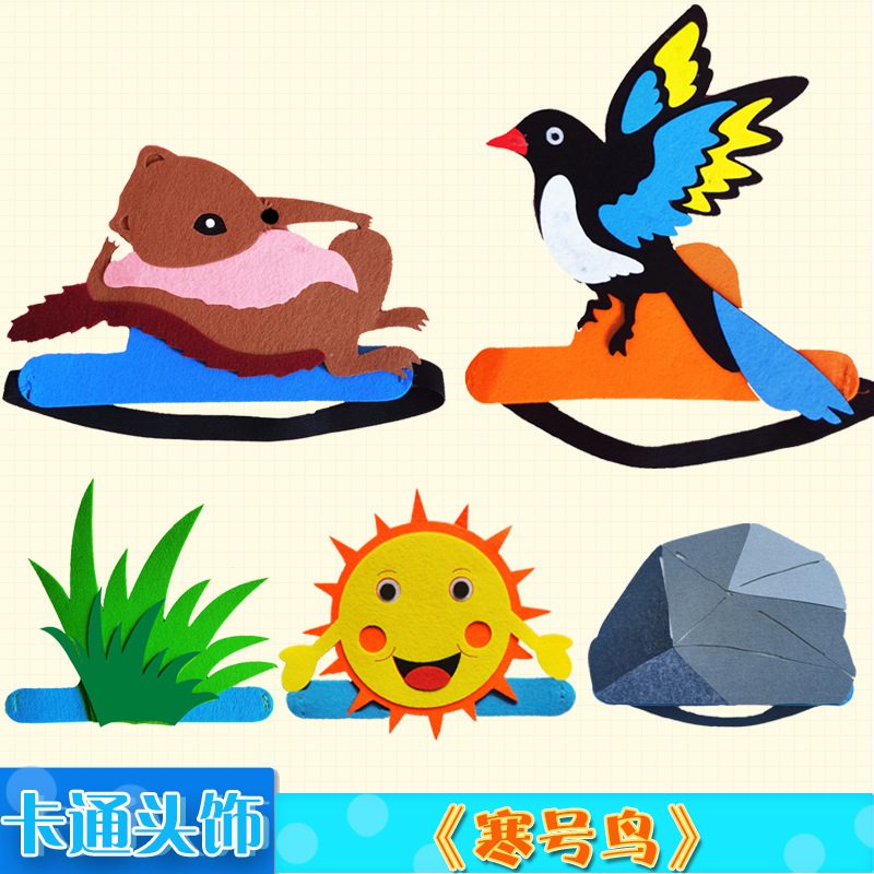 寒号鳥の本文の公開授業の頭飾りの道具の子供の装いはカササギの漫画の帽子の頭カバーの服を演出します。