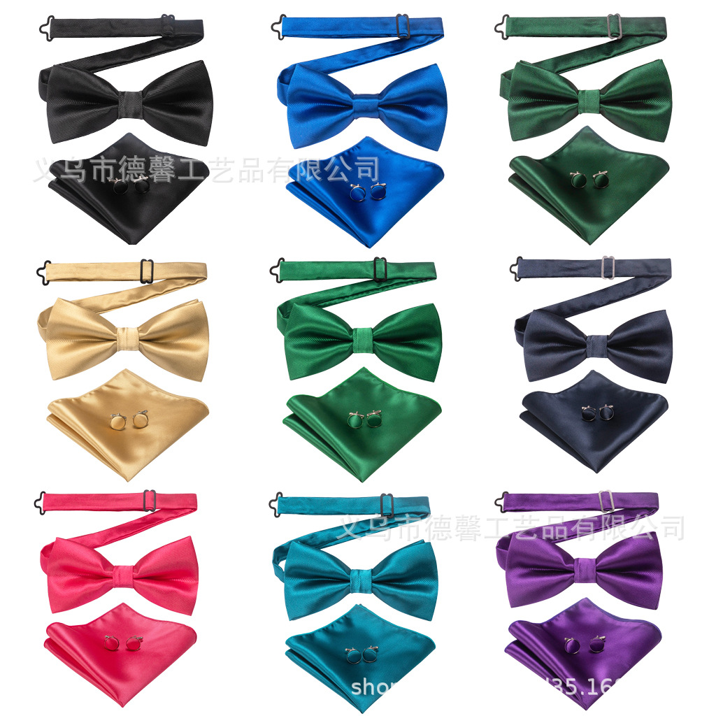 蝶ネクタイ袖口セット男性純色スカーフポケットタオル蝶ネクタイ三点セット舞踏会パーティー男性純色セット