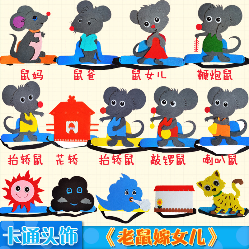 ネズミが花嫁と結婚する、娘の頭飾り小道具、子供のパフォーマンス、花猫の頭飾り、風、太陽、漫画の帽子、壁飾り