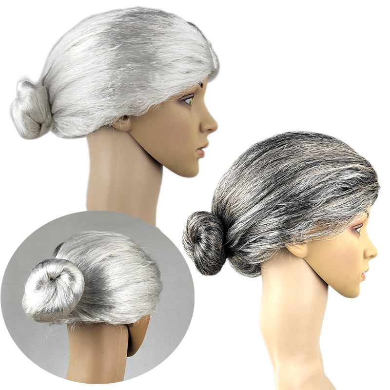 おばあさんがかつらを飾っています。