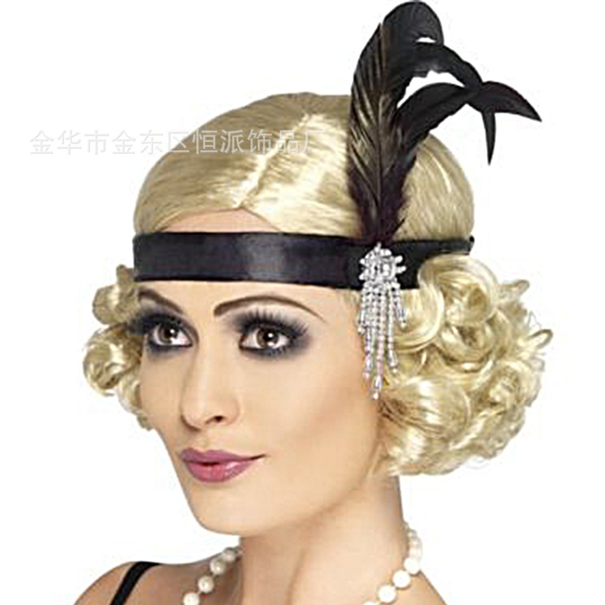 ギャツビーパーティーフェザー合金ヘッドバンド真珠ネックレスタバコロッド手袋セットレトロヘップボーンドレスアクセサリー