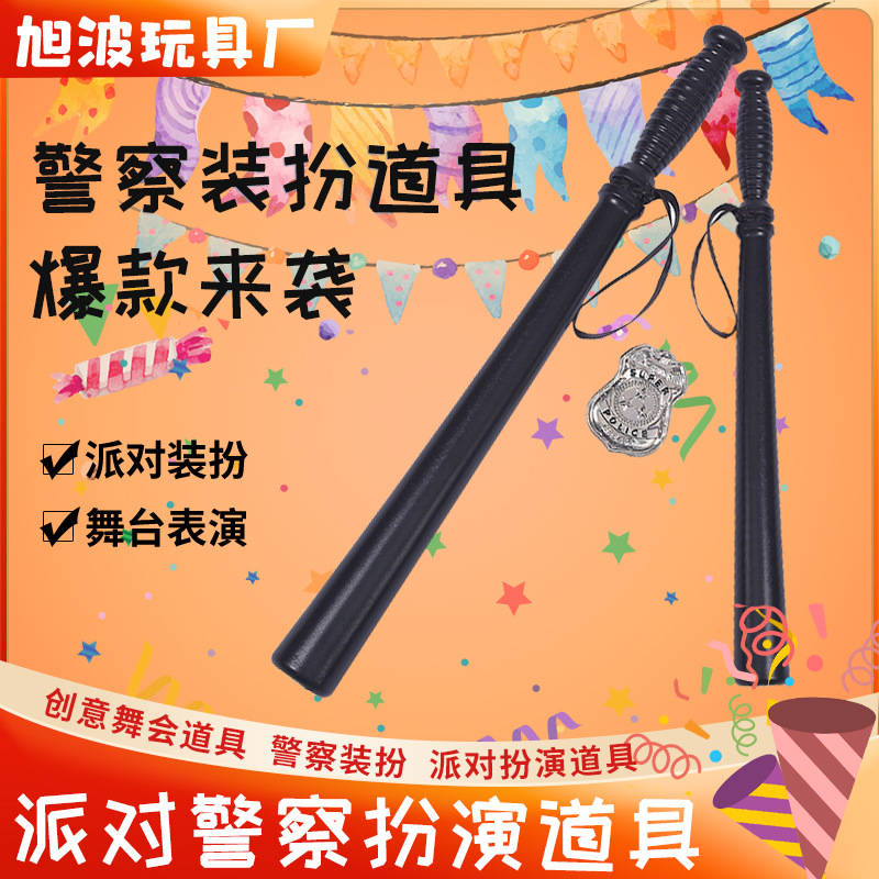 新型警棒道具黒警棒警章セットパーティー化粧舞踏会警察コスプレ道具卸売り