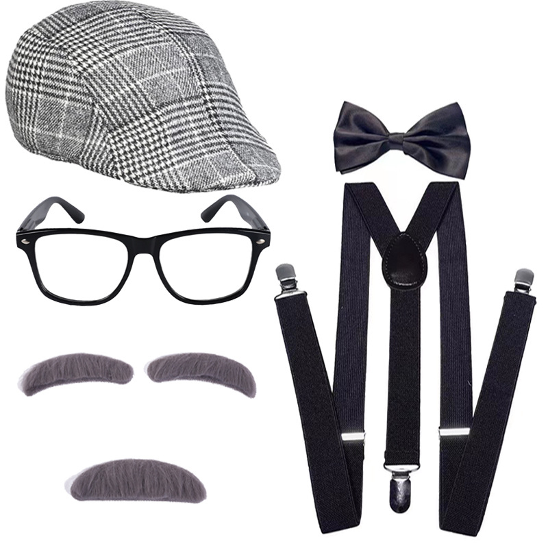 アマゾンの化粧舞踏会用品のメガネのひげの杖のフルセットのおじいさんのスーツの小品のショーのスーツ