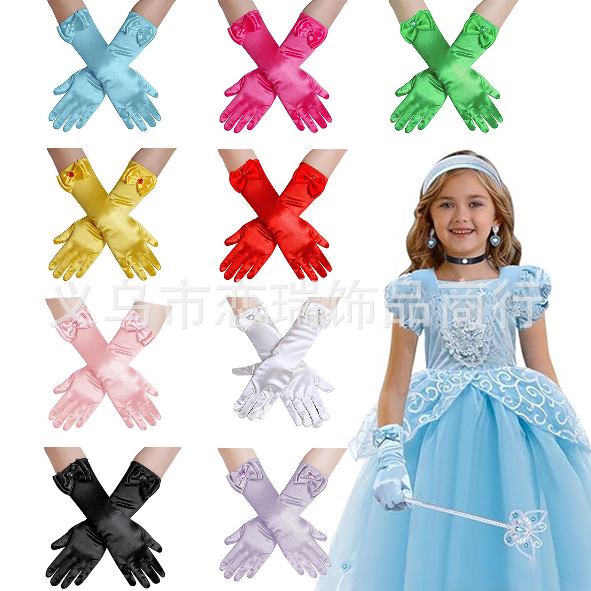 子供の蝶結びの色の丁の手袋は国境を越えて欧米の熱い販売の氷雪の艾莎の舞台のショーの王女のスカートは手袋を飾ります。