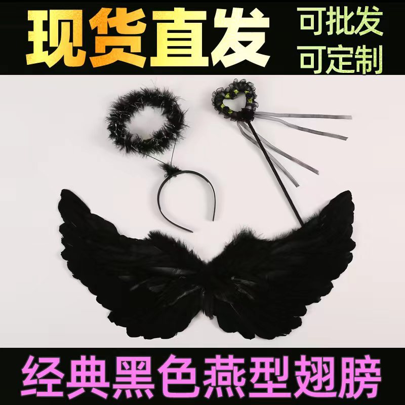 天使の黒い羽の翼の悪魔のハロウィーンのショーの服装の道具の大人の子供は化粧の舞踏会を装います。