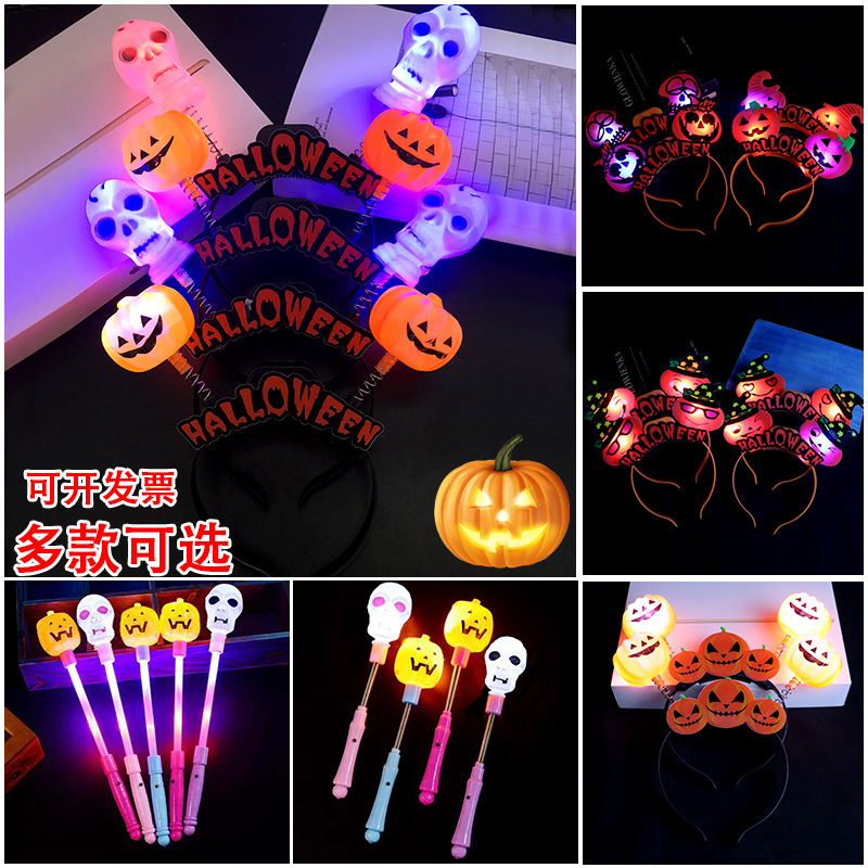 ハロウィーンカボチャ鬼頭ボタン舞台パフォーマンス用品鬼節パーティー頭飾り発光頭蓋頭箍カチューシャ道具