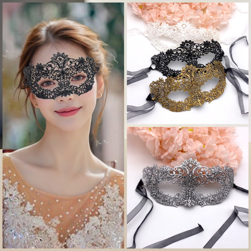 国境を越えてハロウィーンレースの定型マスク化粧舞踏会のお姫様パーティーの半分の顔の黒い趣味のアイマスクの女性