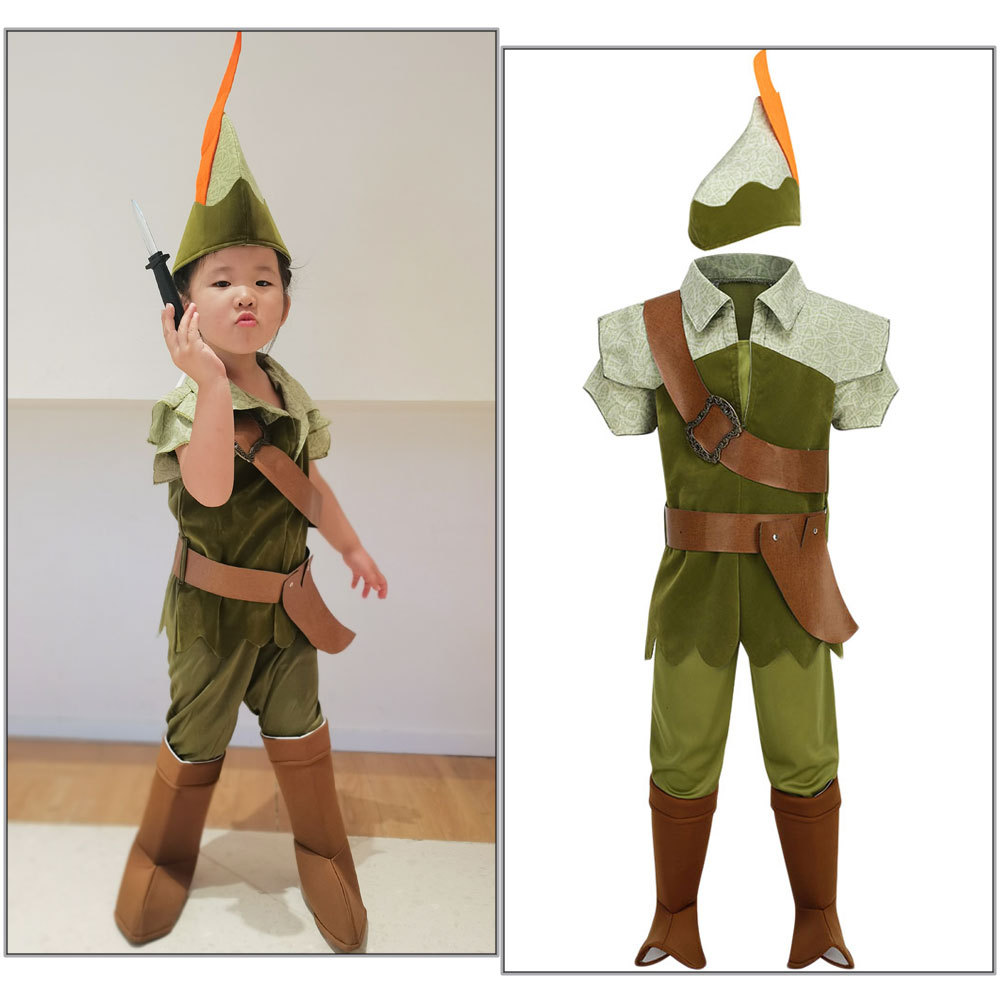 ハロウィーン子供パーティーグリーンエルフクリスマスピーターパン小飛侠演技服Peter Pan新製品