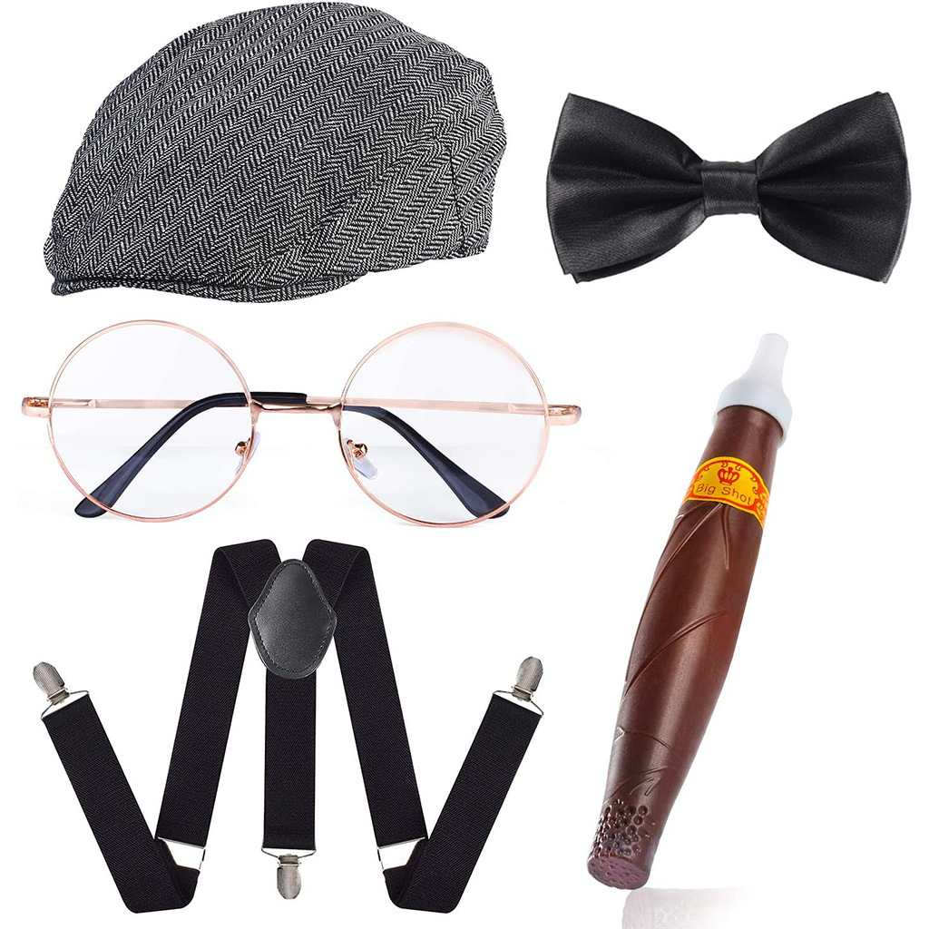 ギャツビーパーティーハロウィーンコスプレ道具毛ね子供帽子メガネ偽シガーストラップ蝶ネクタイセット