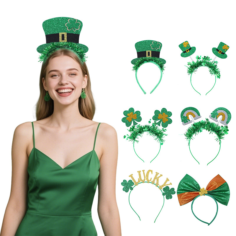 新しいアイルランドクローバーパフォーマンスヘッドバンドパーティーフェスティバルドレスアップ小道具シルクハットヘッドバンドクロスボーダーヘアアクセサリー卸売