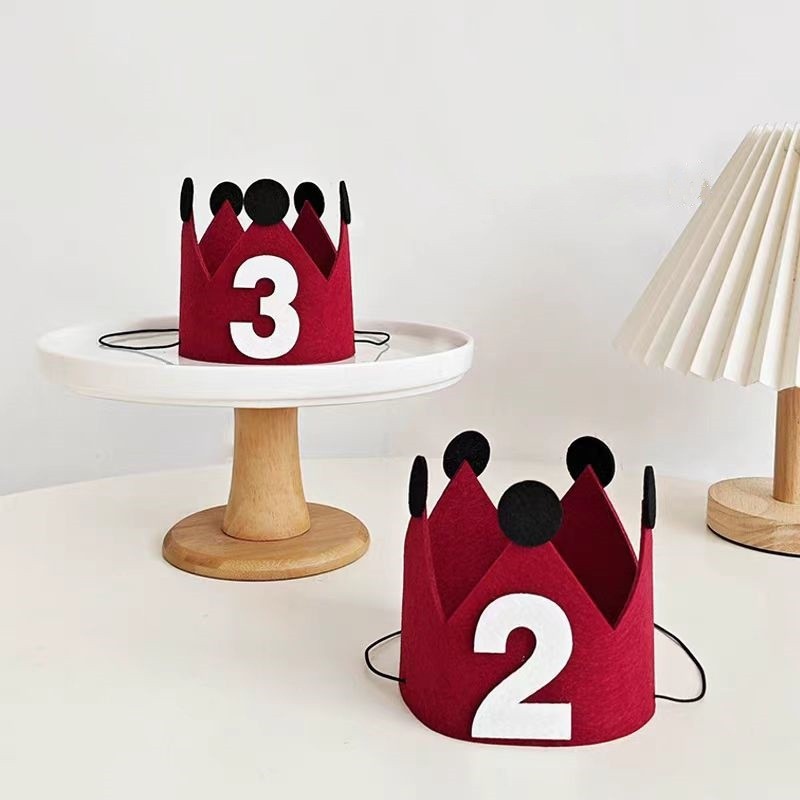 韓国版の赤ちゃんの誕生日パーティーの装飾はデジタルクラウンのフェルトの帽子の赤い写真の雰囲気の道具を配置します。