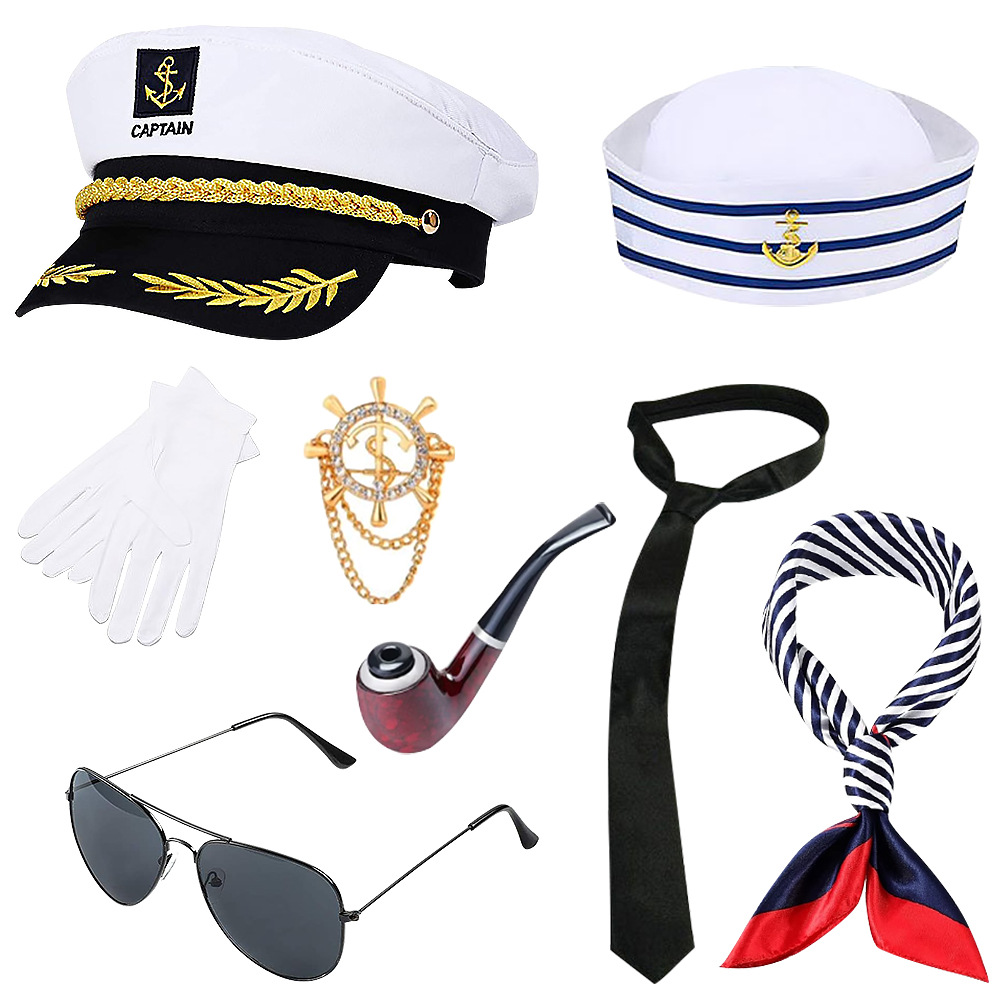 ハロウィーン仮装舞踏会機長スチュワーデスセットセーラーハットシルクタオル機長帽子パイプ太陽眼