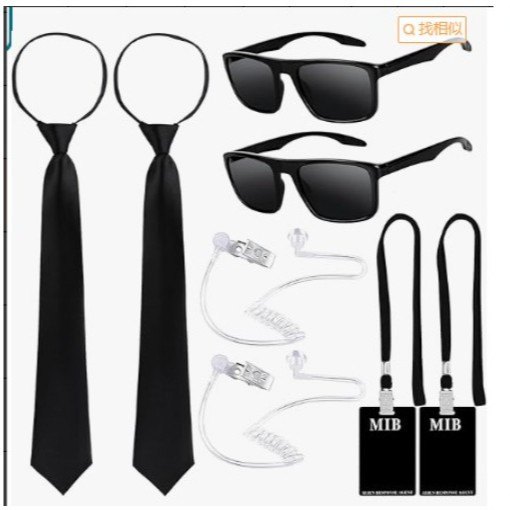 ハロウィーンエージェント衣装セットにはサングラス身分バッジ道具と偽イヤホンパーティー衣装h 1が含まれている
