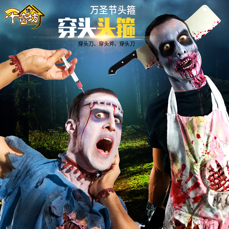 ハロウィンヘッドバンドクロスボーダー特別プラスチックシミュレーションヘッドブロックヘッドバックルコスプレ小道具注射器ヘッドバンド