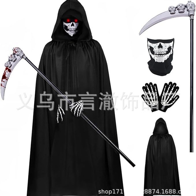 国境を越えた新型ハロウィーン死神マントセット子供フード付きマント黒服装祝日パーティー