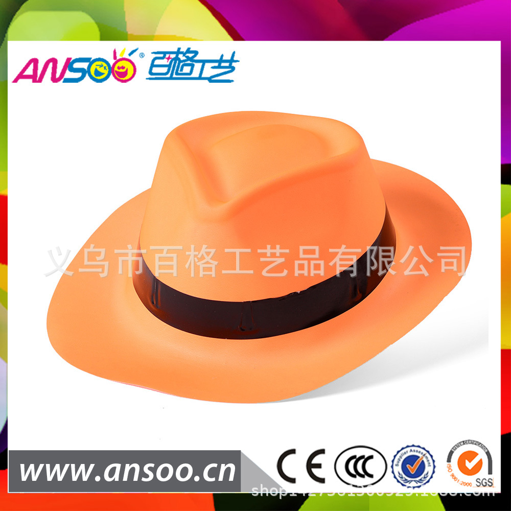 メーカーの単色蛍光ネオン色に黒い帽子を貼る祝日パーティーの帽子プラスチックpvcパーティーの装い道具