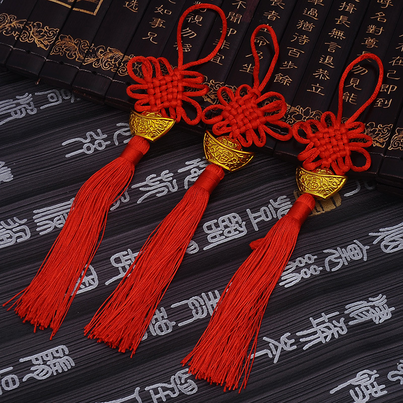 中国の結び目小さなタッセルペンダントレッドミニ代理店結合ストラップぶら下げタッセル卸売安全な 6 プレート小さな中国の結び目