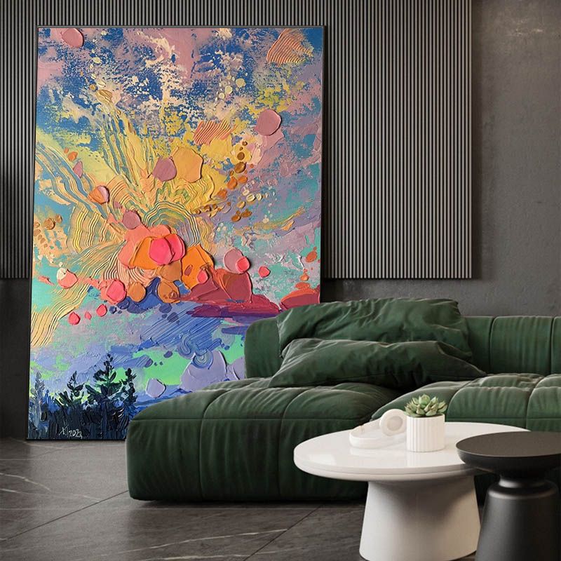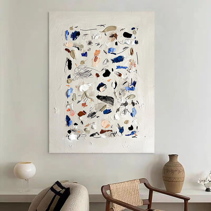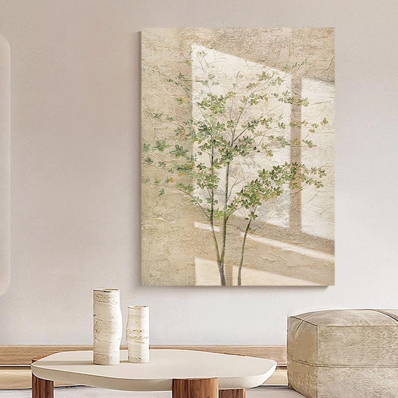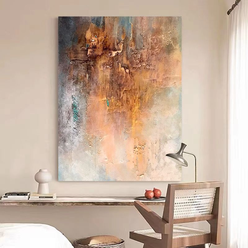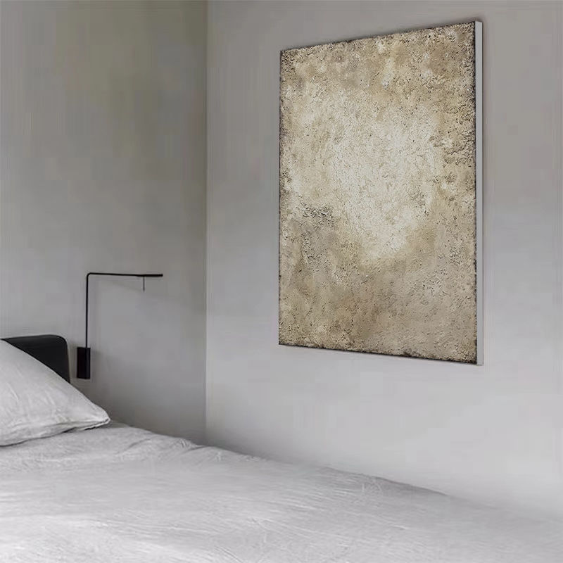 シンプルでモダンな装飾油絵リビングルームのソファの背景北欧わびさびスタイル垂直手描きテクスチャアート床絵画