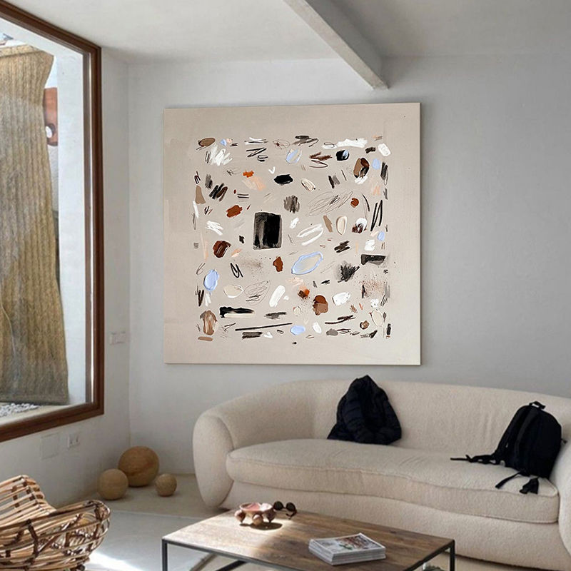 モダンでシンプルなリビングルーム北欧わびさびスタイル純粋な手描きのテクスチャ抽象アート落書き正方形の装飾的な油絵