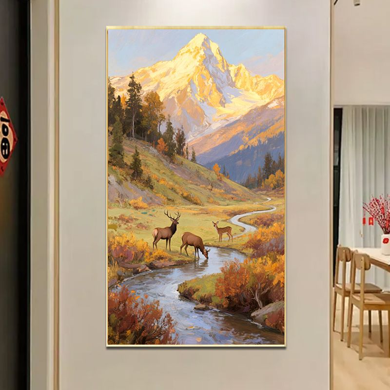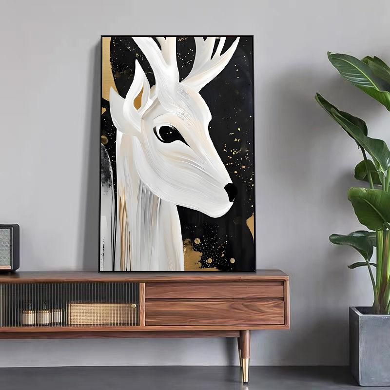 手描き油絵ヘラジカ高質感玄関ドアレベル装飾絵画ライト高級玄関吊り絵画リビングルームソファ床絵画