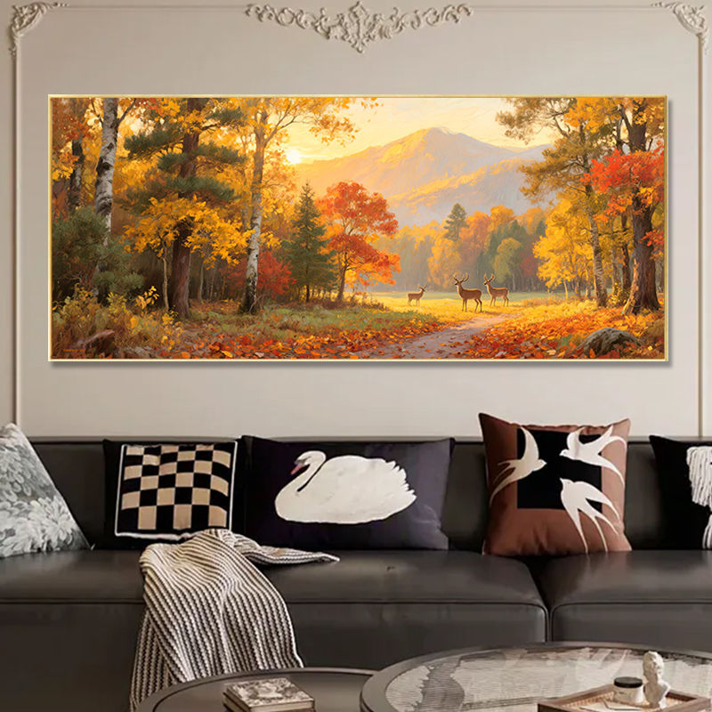 手描き油絵風景黄金の地面クリスタル磁器スプレー装飾画リビングルームソファ背景壁掛け絵画メープルリーフ黄金秋