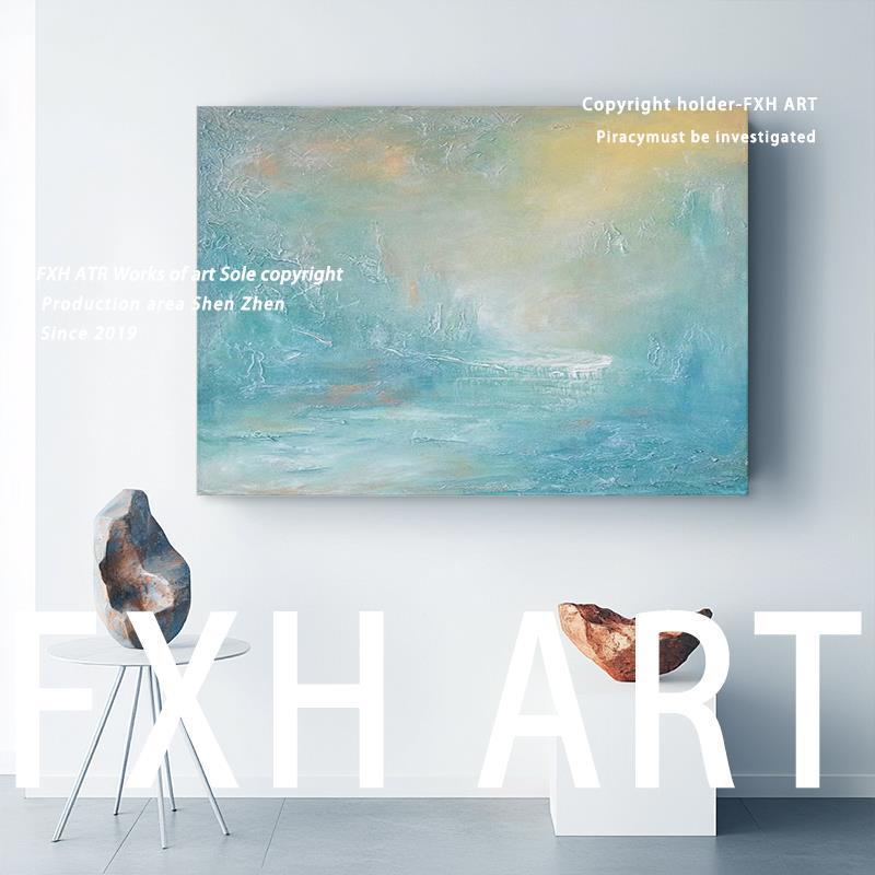 FXH. 手描き油絵「流れる水は富を生み出す」横型テクスチャ抽象的なハイエンドのリビングルームのベッドルームの通路の装飾吊り絵