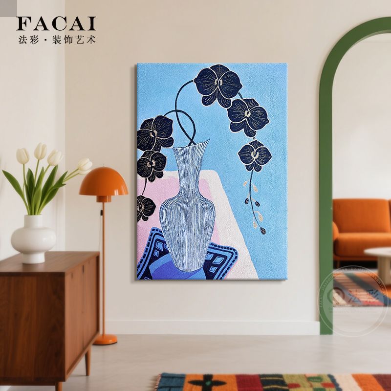 FM.ARTオリジナル「空の谷の蘭」北欧手描き油絵モダンシンプルレストラン吊り絵リビング玄関絵画