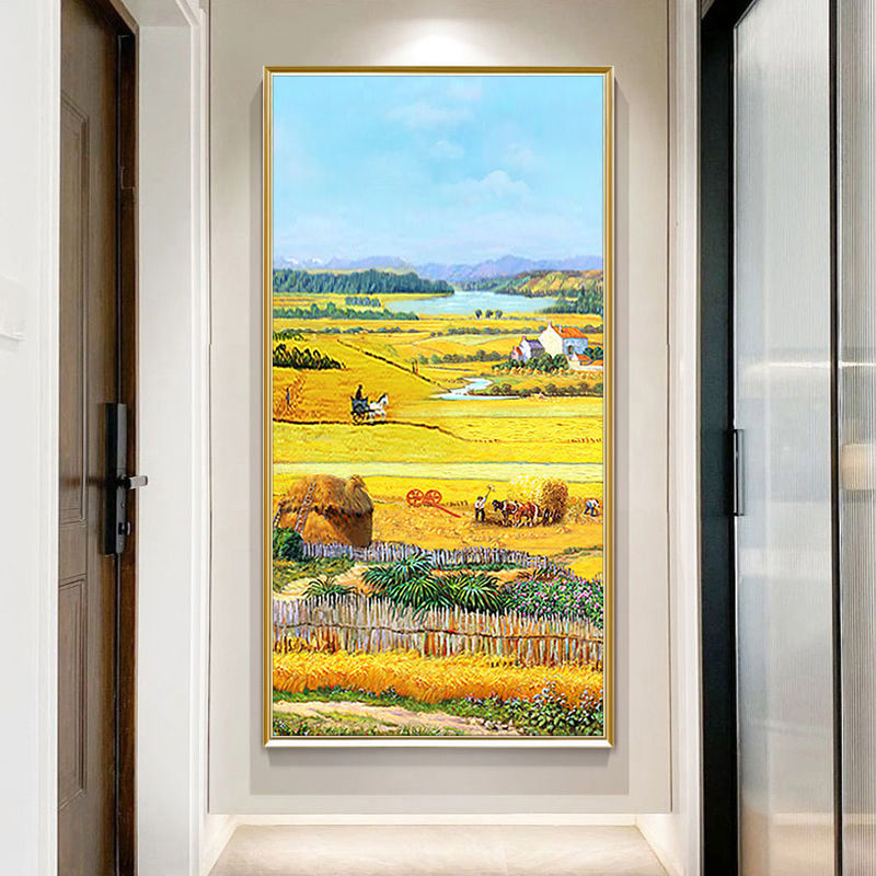 大芬村手描き油絵ゴッホ収穫玄関装飾絵画垂直風景壁画ヨーロッパスタイルの廊下通路吊り絵画