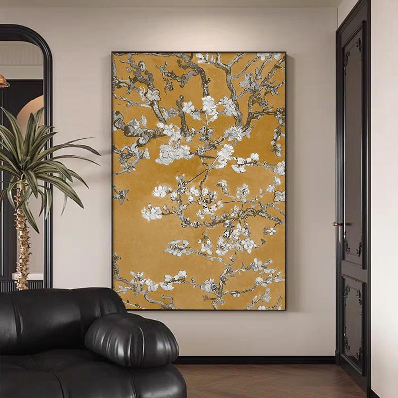 ゴッホの世界的に有名な絵画、アプリコットの花、大芬油絵村、雰囲気のあるソファ背景壁掛け絵画、純粋な手描きの玄関装飾絵画