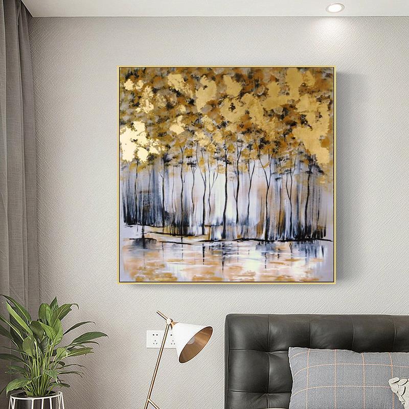 純粋な手描きの油絵金箔ラッキーツリー玄関装飾絵画モダンライト高級リビングルーム背景壁大型吊り絵画