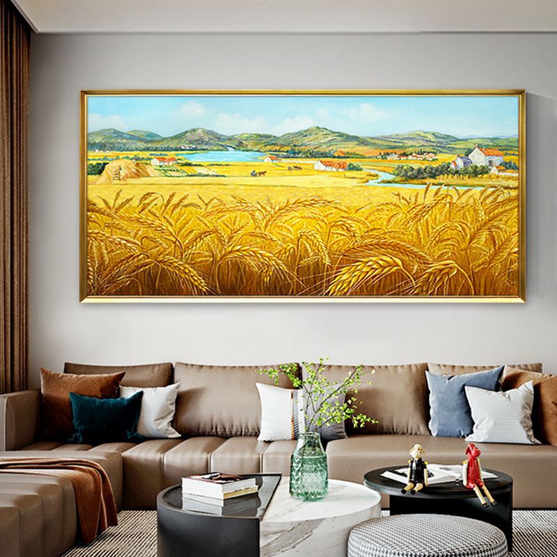 手描き油絵風景大麦収穫宝の盆地アメリカンリビングルーム装飾絵画ライト高級ソファ背景壁装飾絵画