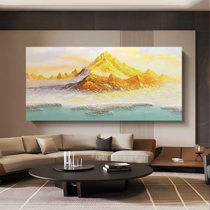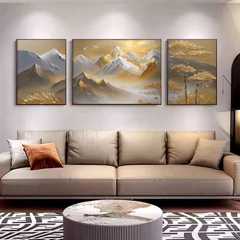 日照金山大芬手描き油絵リビングルーム装飾絵画トリプルソファ背景壁掛け絵画抽象金箔ライト高級