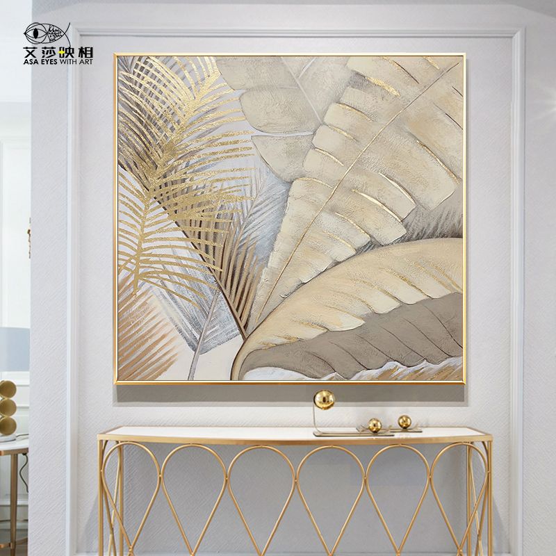 手描き油絵抽象金箔玄関装飾絵画モダンライト高級リビングルームソファ背景壁大型テクスチャ吊り絵画