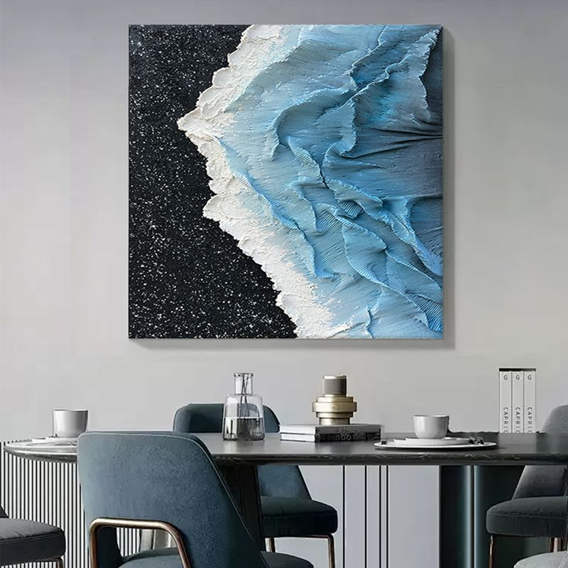 YSUK.ART オリジナル「ブルーオーシャンチャート 4」手描き正方形抽象テクスチャ油絵ゲストレストラン寝室吊り絵画